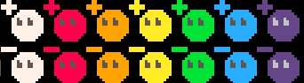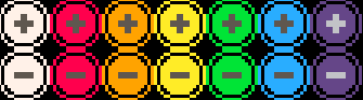 Color orbs: (+) press left, move left; (-) press left, move right. Color orbs can combine with the player and/or other color orbs. Note that (-)(-)=(+) and (-)(+)=(-).